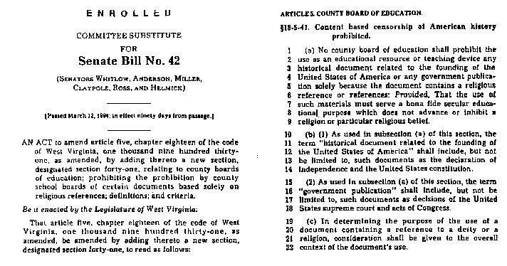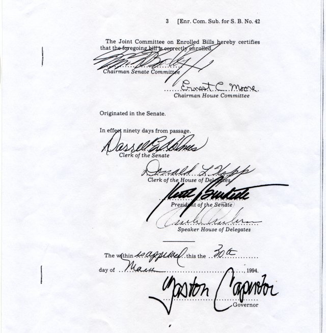 Senate Bill No. 42 signed into law by Governor Gaston Caperton